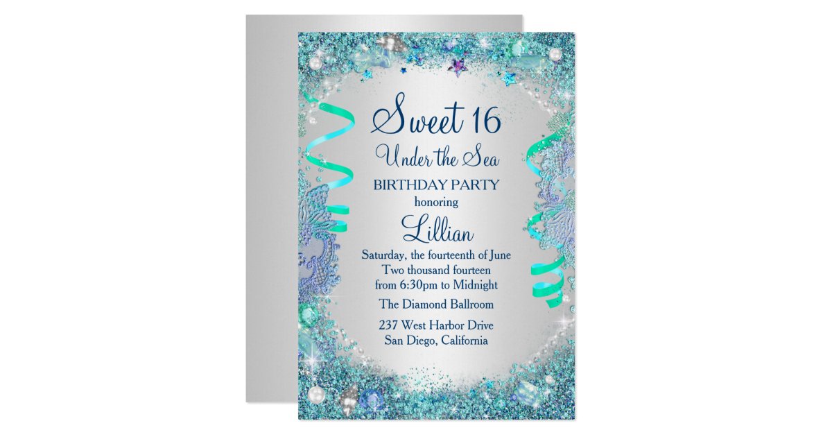 Under The Sea Sweet 16 Birthday Invitations Teen Birthday Invitation