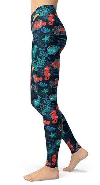 Under The Sea Horse Star Leggings Aquatica Ocean Fish Printed One