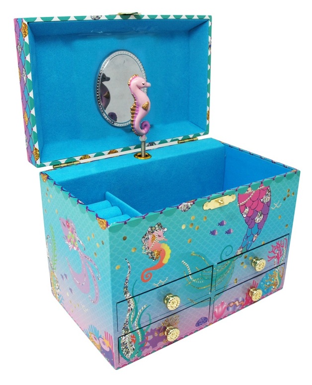Only 8 left in stock order soon. This melody will put a smile on your face every time you play it and you wont have to worry about ursula trying to steal it. Round rich musical jewelry box musical storage box with drawer and jewelry set with lovely mermaid theme beautiful dreamer tune blue.