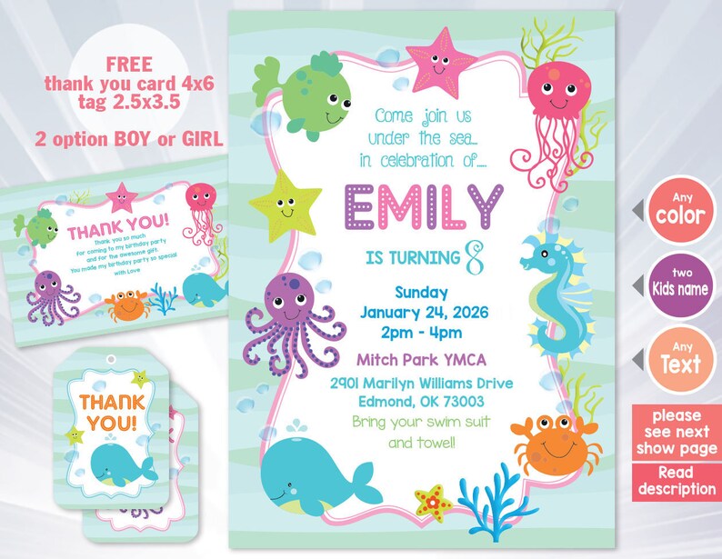 Under Sea Birthday Invitation Under The Sea Ocean Birthday Etsy