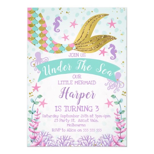 Mermaid Birthday Invitation Under The Sea Birthday Mermaid Party
