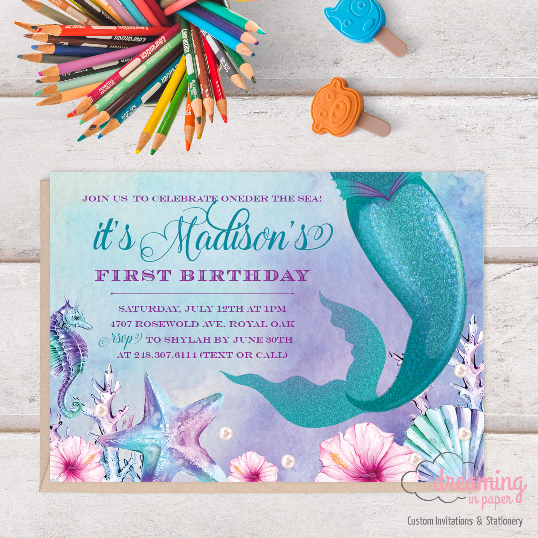 Magical Mermaid Under The Sea Birthday Invitation Dreaminginpaper