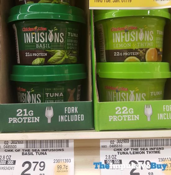 Add to cart in your cart. Infusions basil by chicken of the sea infuses premium wild caught tuna with extra virgin olive oil sweet basil. 21 2019 prnewswire chicken of the sea has begun the national roll out of infusions a resealable single serve recyclable cup of wild caught tuna with a built in fork.