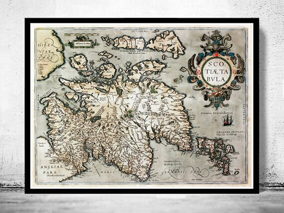 Old Map Of Scotland 1602 Sea Monster Vintage Map Vintage Etsy