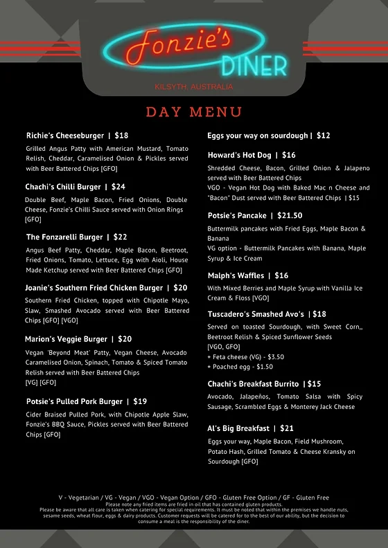 Our Bistro Menu Yarraville Club Entertainment Comedy Food
