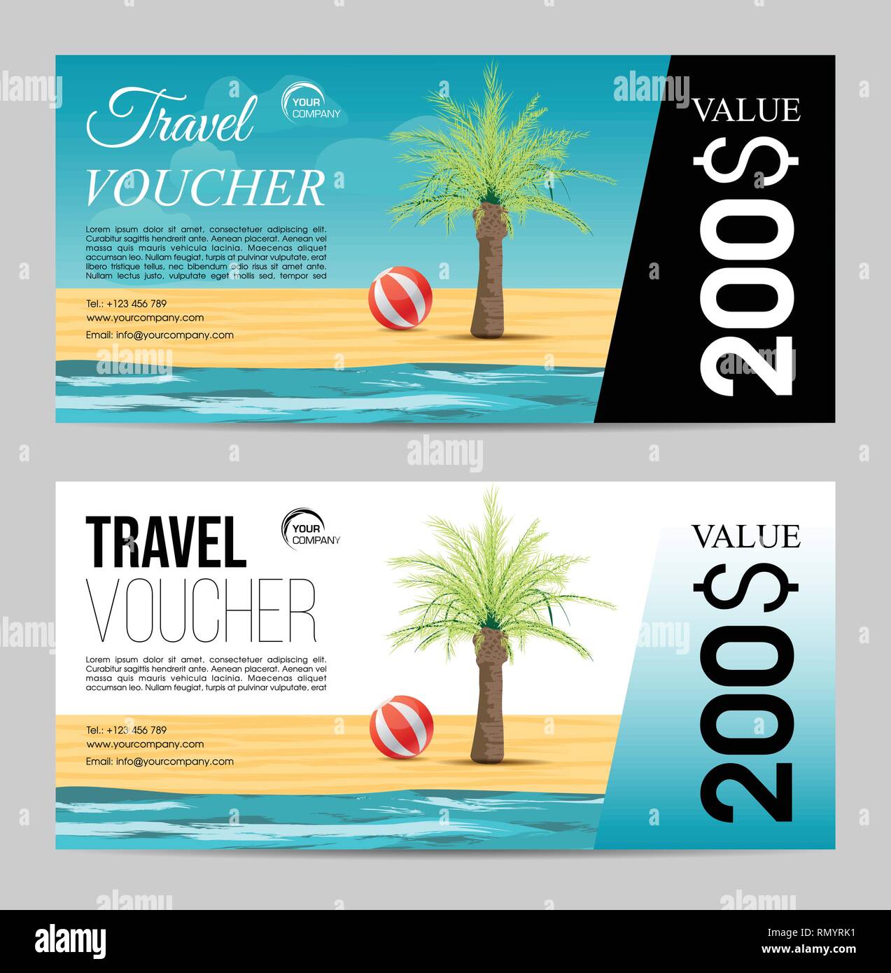 Summer Travel Voucher With Palm Tree And Sea Stock Vector Art