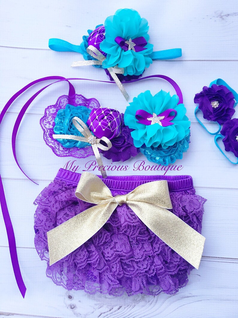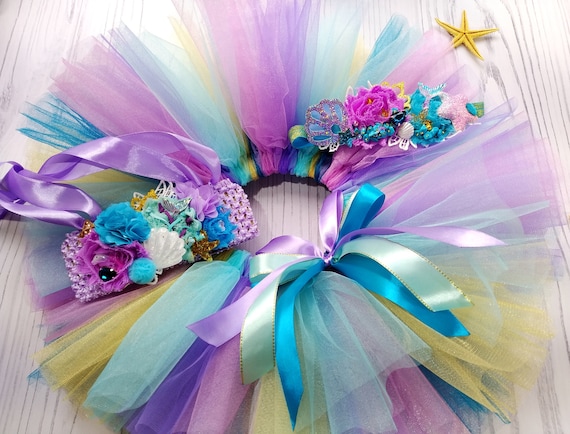 Little Mermaid Princess Baby Tutu Set Purple Aqua Tulle Birthday