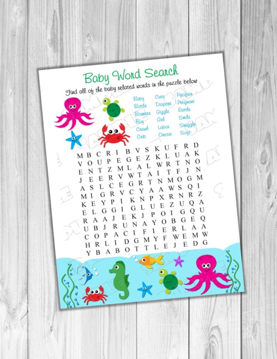 Under The Sea Baby Shower Games Word Search Game Printable Etsy